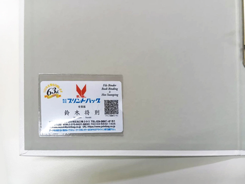 PPにはヒートシールという熱圧着で紙製はタック式の名刺ポケットを貼り付け。